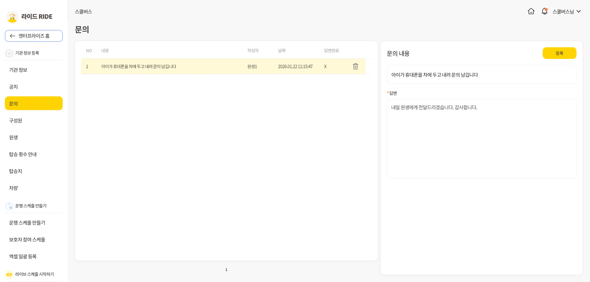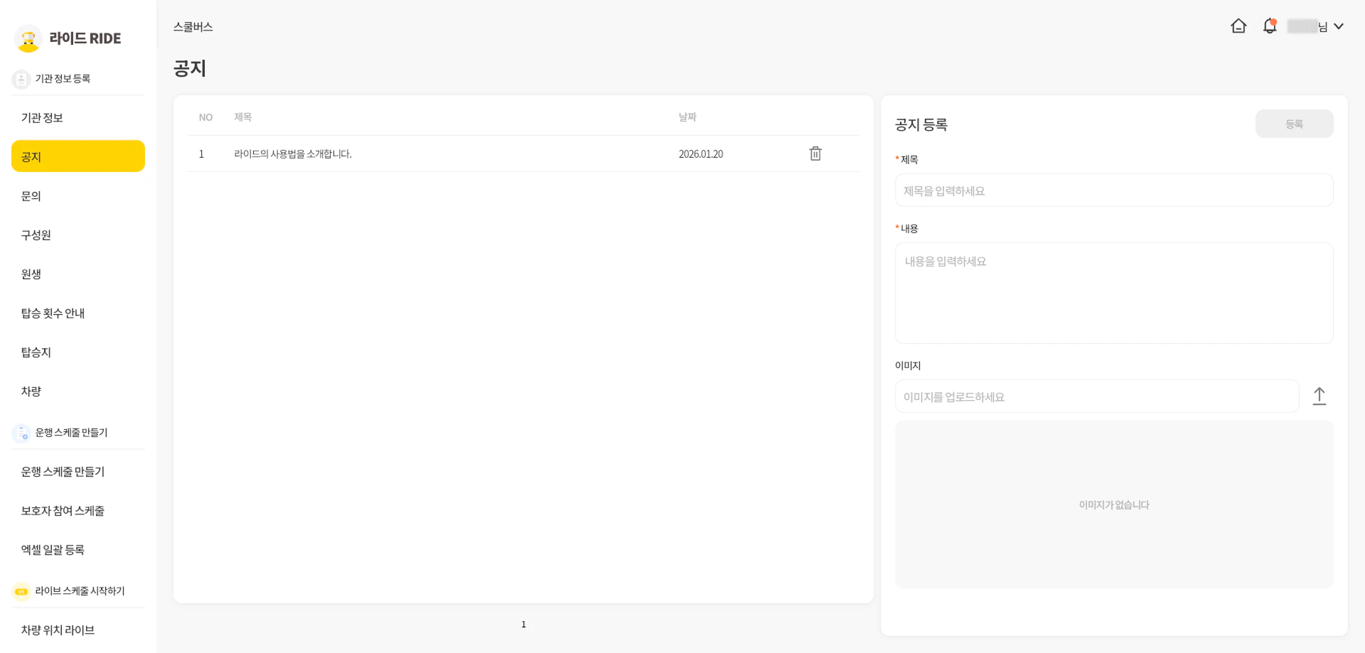 PC 이용 가이드기관이 페이지에서기관 기관을 관리합니다. 홈 PC 버전은 원장님, 선생님, 동승자님 유형으로 등록된 기관만 이용이 가능합니다. 기관을 선택하고 로그인합니다. 기관 생성 기관 생성은 앱에서만 가능합니다. 기관 생성 가이드를 참고하고 생성해주세요. 기관 정보 공지/문의 공지 기관의 구성원에게 알릴 공지를 작성합니다. PUSH 알림이 구성원에게 전송됩니다. (동의한 회원에 한함) 문의 보호자가 남긴 문의글을 확인하고 답변할 수 있습니다.